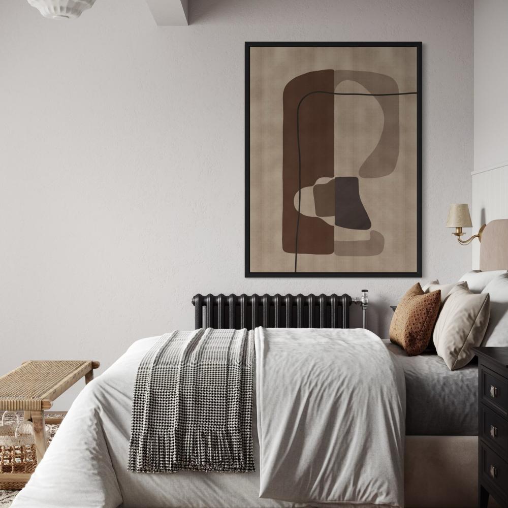 زوج من اللوحات التجريدية يُجسد رحلة شعورية نحو الداخل، حيث تتقاطع الأشكال العضوية والخطوط المنحنية في فضاء بصري هادئ ودافئ.